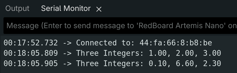 BLE communication follows a client-server model, where central devices (in this case, the computer) read or write data from a peripheral device (the Artemis board).