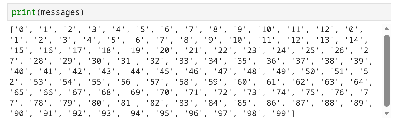 We print the data and see that every iteration is succesfully received.