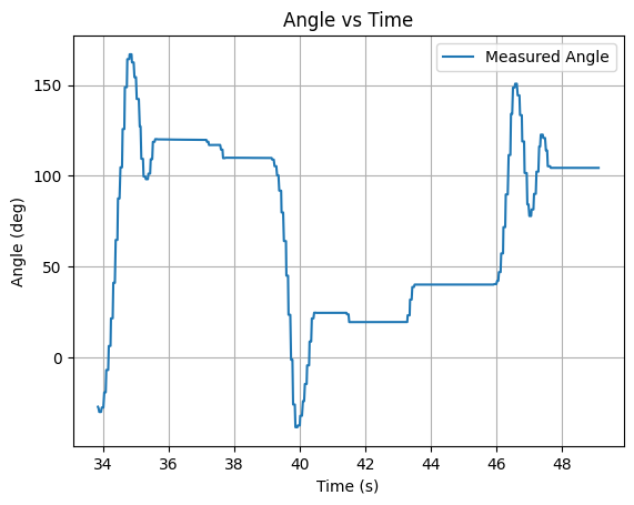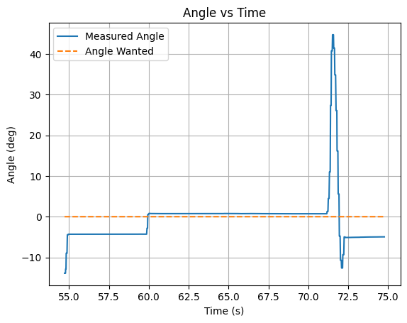 To help the debugging process, graphs of the set desired angle, the measured angle, and the PWM values were created.