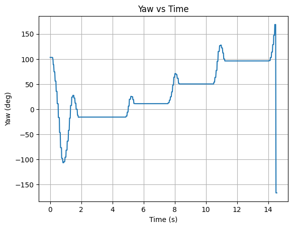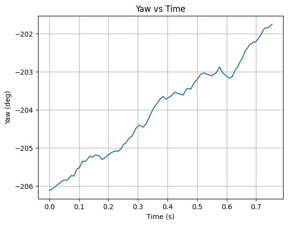A function get_yaw was written to convert the quaternion measurements into yaw angles.