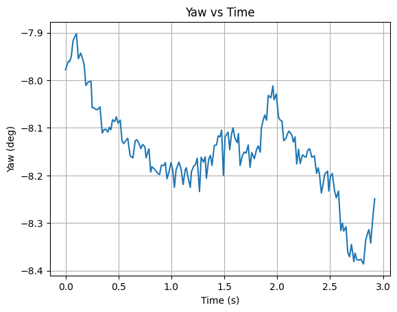 First, the yaw data was graphed. We observe that there is significant drift even while the car is still.